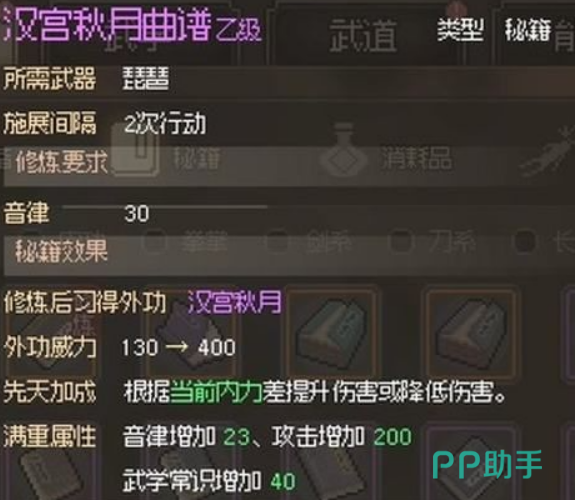 接下来,你需要前往西南地区的荒废庭院,并选择帮助妙音坊。这个时候就会触发一场战斗,得到胜利了以后,你就能够将汉宫秋月曲谱拿到手了,这个曲谱是可以提升音律技能的。
