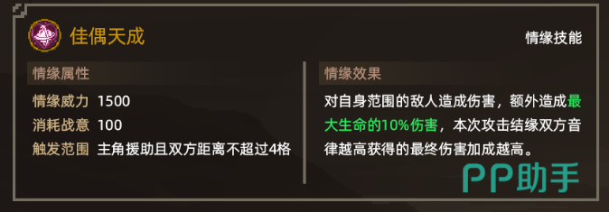 在好感度达到要求后,持有焦尾琴的你可以在妙音坊门口等待顾倾城出现。她会询问你是否带来了焦尾琴,经过对话后,你就有机会邀请她加入队伍。入队后,你只需带她前往月老祠,消耗一个三生石,然后i就可以和顾倾城进行结缘了,还能够得到情缘技能【佳偶天成】。