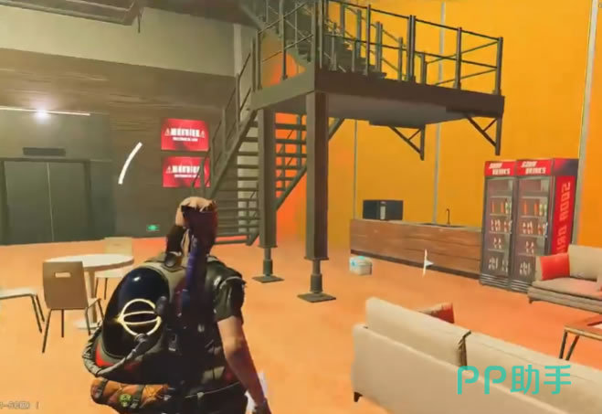 先下到传送塔位置,然后向建筑的方向看,会发现下面有一个开启的小门像是电梯间,就是这个门了,赶紧进去吧!进入后发现这可不是什么电梯,其中空间很大,沿路都是玻璃隔开的各个房间,像是空荡荡的某个办公区。