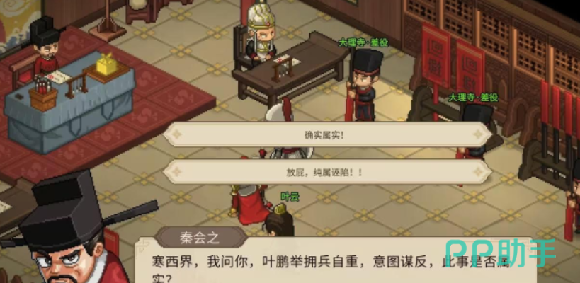成功进入大理寺之后,你就会来到公堂之上。在这里秦会之会对你动用私刑,接下来你会有两个选项,分别为确实属实和诬陷。确实属实这个选项会让玩家们的名声等属性大幅度下降,并且减少两名队友,而如果选择纯属诬陷的话,那么会在被打一顿之后扔出大理寺,还有可能会被刺客刺杀。完成这一部分的剧情之后,就可以前往风波亭了。