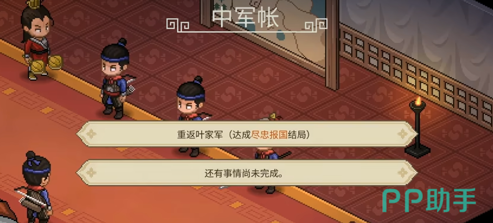 最后的高潮来了:与秦桧之的单挑。这场战斗是对玩家个人实力的最终考验,胜利意味着不仅彻底击败奸臣,也代表着正义。秦会之战败后,他会被九流门带走,而皇帝也会重新恢复叶家军的编制。此时,玩家只需返回叶家军帐篷,便可顺利达成“尽忠报国”结局。