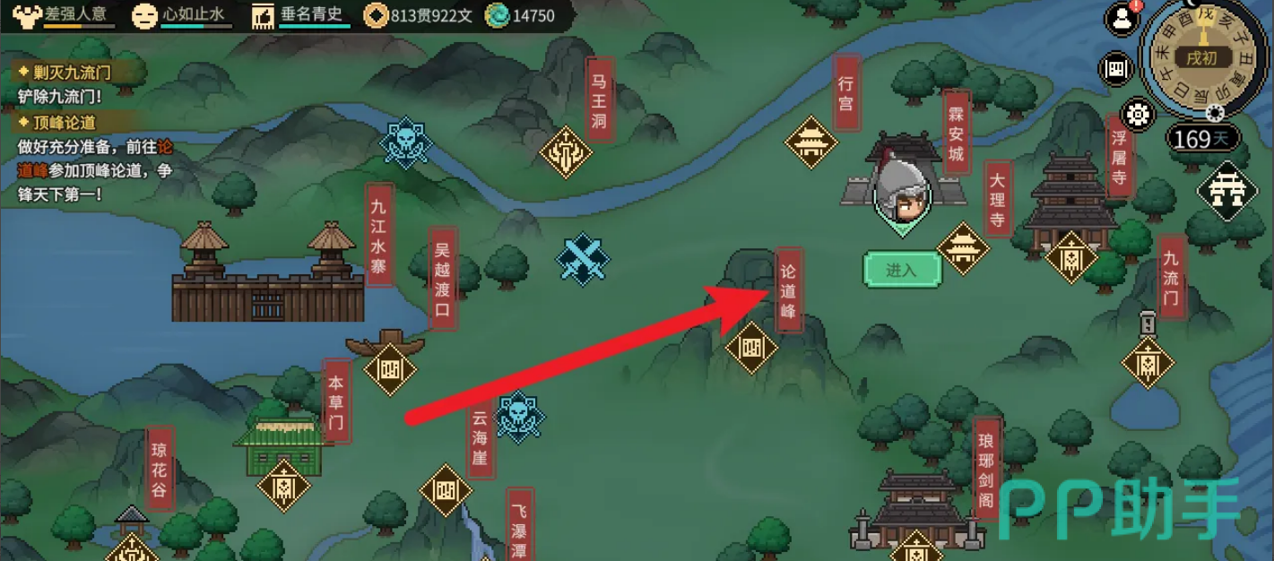 在游戏中,要触发顶峰论道任务,首先你需要耐心等待飞鸽传书。这封信件会是你通往武林顶峰的第一步。当收到消息后,你将面对三大门派的抉择,任意选择其中一个门派进行挑战。任务地点设定在霖安城附近,当你抵达这里后,就能看到那个传说中的顶峰论道入口。