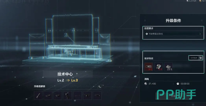 研发部门是作为综合中心,直接影响玩家的经验获取与科技树解锁。包含技术中心和指挥中心。前者是来生产武器配件的作用,不断升级后才能解锁更多强力武器图纸。而指挥中心影响玩家每次对战获取经验的比值,以及与其他玩家交易能够上架物品数量的程度,升级后能更快的获取经验且更多上架闲置物资,增加哈夫币的收入。战斗部门分为训练中心和靶场,专注于提升玩家的战斗力与基础面板数值,直接影响生命力与体力上限。靶场提升则会提升玩家负重上限,能够携带更多武器物资。