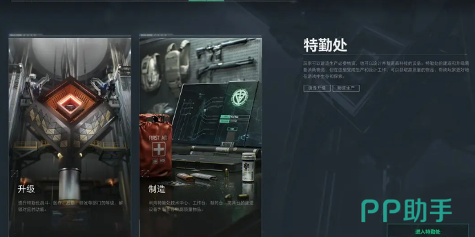 特勤处是游戏中的综合管理组织,能够为玩家的物资供给、武器制造、医疗用品以及日常战斗训练提供重要的帮助。特勤处分为战斗部门、研发部门、医疗部门、战术部门以及后勤部门五个结构,各自具有独特的作用。玩家在养成角色的过程中需要不断升级后勤处的各类部门等级,才能获取更多经验与物资,让战斗体验更加顺利。每次解锁升级都需要具有特定等级与材料才能提升,而材料不足时需要花费哈夫币来作为补充。