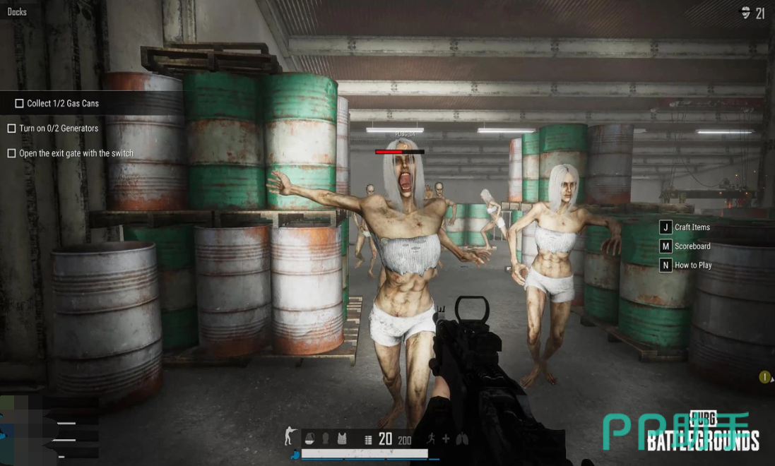 游戏开始时每位玩家只配备一把手枪,需要通过击败丧尸来获取更多的子弹和装备。玩家可以在出生点的装备台上获取装备,也可以在地图上的其他装备台和摇摇机上获取。在险境突围模式中,游戏界面左侧会显示当前的任务目标,玩家需要根据提示完成任务。像什么收集一定数量的油桶,然后将其运送到指定位置并点燃,以启动发电机并通关等等,玩家还需要注意寻找补给,如医疗包和弹药,这些都是在丧尸横行的环境中生存的关键。