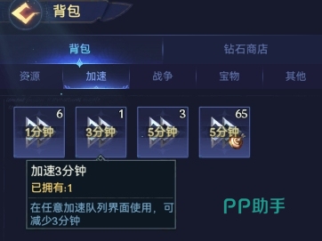 游戏之中本身就为大家提供了多种加速道具,3分钟加速、5分钟加速等,而这些道具使用以后,就可以直接减少建筑升级所需的时间,通过活动和礼包等福利就能获取,从而快速推进建筑升级过程。