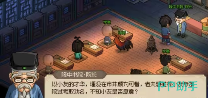 获得秀才身份后,你可以去大梁城的太学院,找院长继续对对子。虽然你在成为秀才之前也可以去,但只有拿到秀才身份后,院长才会推荐你参加乡试。同样,每次答题都会增加智慧,连续五次答题成功后,院长会推荐你去找大梁知府报名乡试。