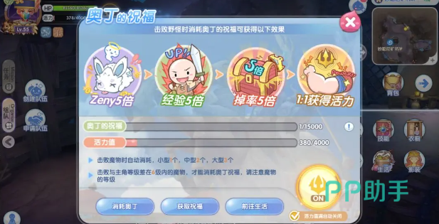在该作中等级被分为角色等级和技能等级,两种是单独计算的,玩家不管是转职还是想进行冒险都有达到对应等级的条件,所以获取这两种经验对于新手而言非常重要,想要快速获取经验我们需要了解一个重要系统,那就是奥丁的祝福,在完成王城站岗和每日委托以后就能获取一定数量的祝福,开启祝福再去野外挂机玩家可以获得,五倍的挂机经验,五倍的挂机金币,五倍的掉落获取,这能大大提升玩家的获取效率,所以建议新手获得祝福后再去野外挂机。