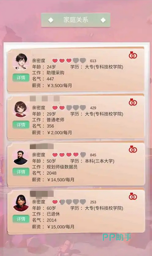 当大家从学校中毕业之后,就要面临找工作的情况,游戏里的工作种类也非常多,玩家可以选择不同的职业来开始自己的职场生涯,有公务员,普通职员,运动员等传统职业,还有一些非传统的职业都可以去选择。在找工作的时候,大家也可以看到会展示出很多适合自己的岗位,这些岗位的薪水以及要求都有所不同。如果大家想要赚钱,那么小编推荐学习一些理科型的专业,这样找工作会更加轻松一些。