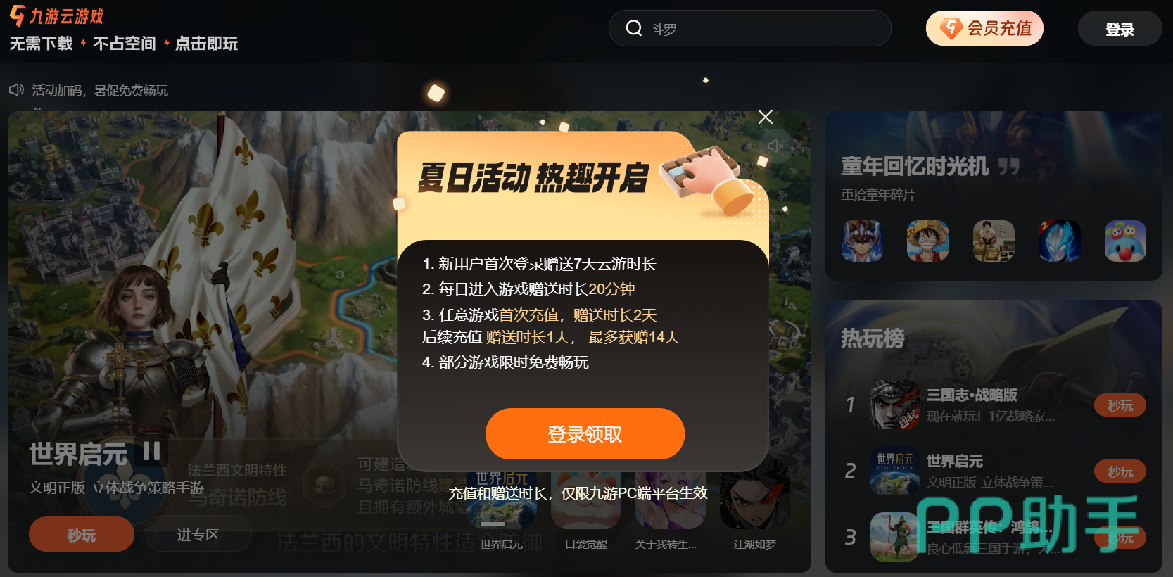 现在正是加入战双帕弥什最好的时机,特别是通过九游云游戏平台,你可以享受许多独特的优惠福利。首次登录就可以免费领取7天的试用时长,每日签到还能获得额外的20分钟游戏时长。如果你第一次充值,还有额外的2天游戏时长赠送,让你玩得更加尽兴。这样的好处,绝对不容错过!
