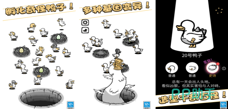 一款以鸭子为主题的搞笑类手游,玩家需要按照任务要求来从不同的鸭蛋中选择正确种类来孵化鸭子,鸭子之间犹豫基因与变异的因素会产生相当多的种类养猫,玩家将会见识到千奇百怪的鸭子形象。游戏的玩法较为简单且手绘风格的画面让玩家的感知非常轻松休闲,再加上不同鸭子之间的对话相当幽默搞笑,充满各种奇葩趣味台词让人忍俊不禁,游玩体验很不错。