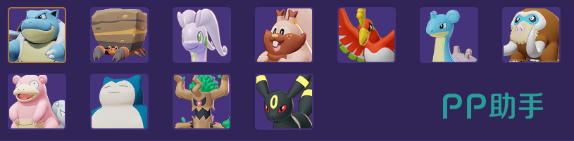 水箭龟、岩殿居蟹、黏美龙、藏饱栗鼠、凤王、拉普拉斯、象牙猪、呆壳兽、卡比兽、朽木妖、月亮伊布