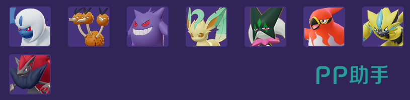 阿勃梭鲁、嘟嘟利、耿鬼、叶伊布、魔幻假面喵、烈箭鹰、捷拉奥拉、索罗亚克