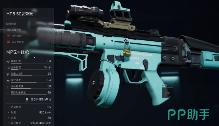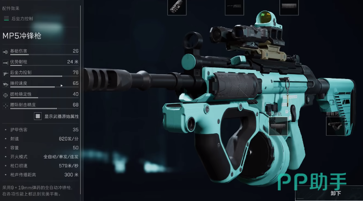 mp5是很多人都会选择使用的一把冲锋枪,并且是排在第二名的一把枪械,这个手枪的射速极快,并且伤害力比较高,用过这把手枪的应该也都发现了枪械的后坐力会做一些更加适用于新手,所以代表这个枪支整体的灵活性是比较优秀的,能适应的群体也很多,加上这把枪械弹夹有50发的容量,所以整体的续航能力也是很优秀的。