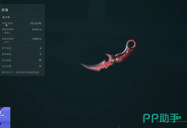 然后点击赤枭这把刀具的武器界面,就可以在下方看见装备二字,直接点击装备就可以成功穿戴刀具皮肤。但是还是需要提醒玩家的是不仅仅要掌握该款刀具的具体装备方法,还需要玩家具体了解一下该武器装备的具体切刀动作,第一个比较容易触发的模式就是转到通过手部旋转即可快速切到刀皮肤,第二种模式就是通过挥刀动作来进行道具的触发,不过这个触发难度模式会比较高。所以对于新人玩家来说,还是建议选择第一个触发模式为主。