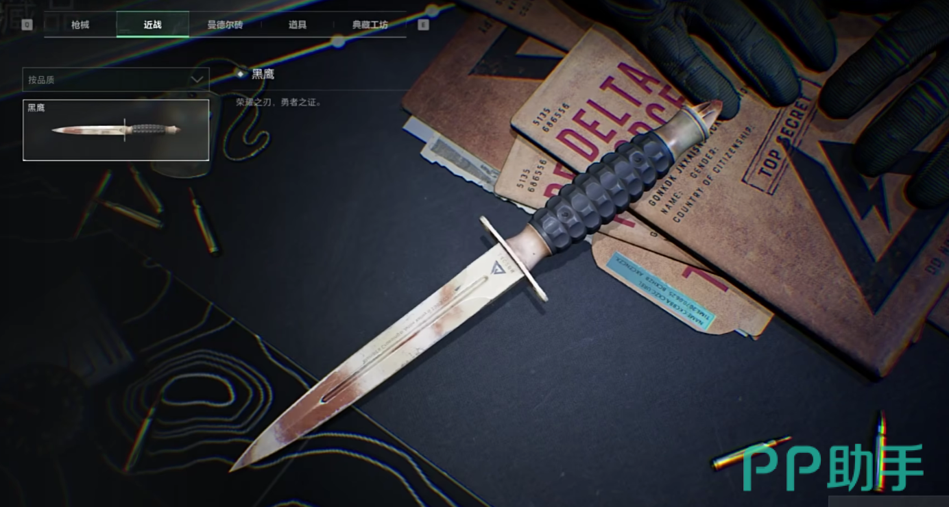 在三角中行动当中,主要有这两种近战武器,他们分别是黑鹰匕首和赤枭爪子刀,黑鹰匕首是三角洲行动当中,作为游戏彩蛋赠送给玩家的近战武器,他拥有极高的基础攻击倍率,并且每一次的攻击都能够造成穿甲伤害,也是游戏中唯一一个能够无视敌方防御装备的武器,但是他的攻击距离非常短,前摇也是很长的,比较适合最终boss战斗和一些大战场的偷袭玩法,不仅如此,黑鹰匕首的战斗效果也是非常绚丽的,在游戏内,玩家可以通过欣赏功能来解锁黑鹰匕首的演示效果,从而在战场中实现耍花刀的动作。