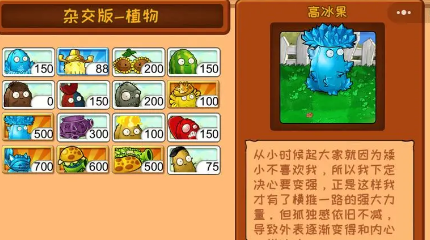 植物大战僵尸杂交版当中有很多非常特色的设定,高冰果作为全新的植物是之前前所未有的,这是由坚果与冰相结合的杂交物种。可以安装在每场对局的前排作为实力超强的前排坚果,拥有较高的抗伤能力。