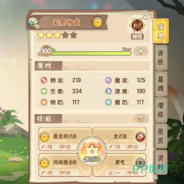 西普大陆手游天圣帝龙怎么样就为大家介绍到这里,光系宠物大部分都有较强的攻击能力,此宠物就是非常典型的攻击型光系精灵。玩法简单,技能更是独具特色,在一定范围内提升速度,增加攻击力。