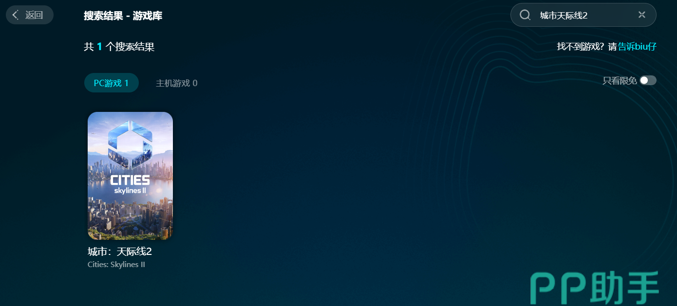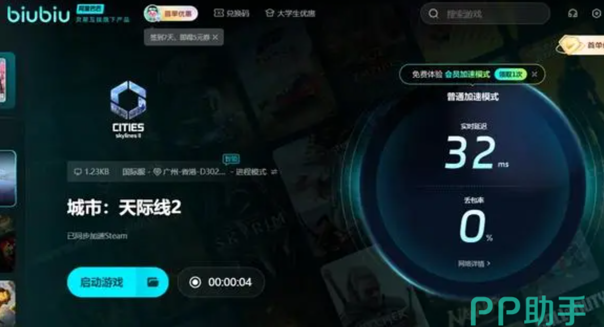 城市天际线2是许多玩家都喜欢的经营策略类游戏,在使用biubiu加速游戏网络的时候,在主页面可以快速找到相应的游戏,在加速按钮处可以点击开启网络加速,什么时候需要加速什么时候打开就可以了。
