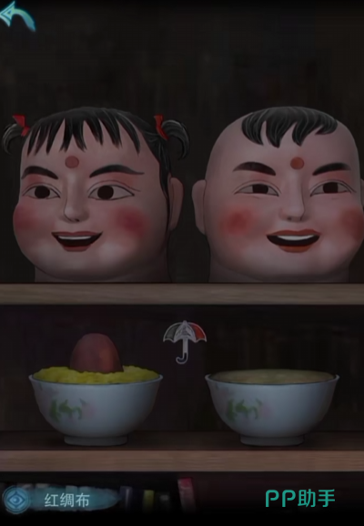 继续在糖人店内探索,你会发现书桌上有一个老式【游戏机】和一张票。按照“褐3紫6绿6蓝7黄8红9”的顺序在玩具中放入珠子,将获得一把【刻刀】。利用刻刀切割围栏横幅,你得到了一块【红绸布】。回到糖人店里间,红绸布被用来给女娃扎辫子,从而触发机关获得一个【纸团】和一瓶【饮料】。同时,记住娃娃下方提示的“黑白红伞柄左”信息,这将在后续解谜中发挥作用。