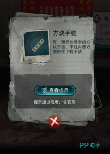 完成上方的步骤后,大家就可以选择回到糖人店,选择道具栏中的道具,利用方块手链上的线索输入密码“一切唯心造”就可以打开盒子获得【钥匙】了,在使用钥匙打开浴室储物柜获得【白糖】和【纸条】。将白糖和饮料倒入锅中制作糖人并放入糖人架获得指针指向动物的线索。