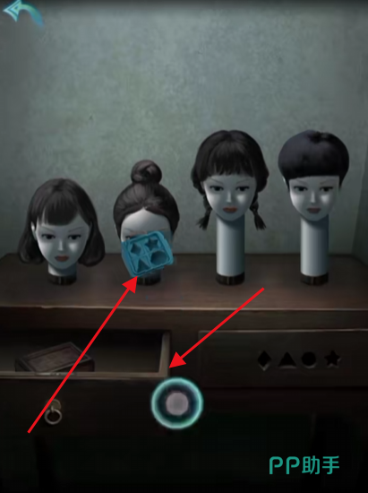 人偶与冰块的秘密,来到放置人偶的桌子处,按照之前记住的身高顺序调整人偶位置,你将获得一个【冰格模具】。将饮料倒入模具并放入冰箱冷冻成冰块,再将冰块放入柜子凹槽中,你将获得半个【手镯】。在走廊的窗户上展开纸团并根据线索打开盒子,将获得另一个半个手镯。将两个手镯合并后放在佛像胸口,触发剧情并获得一把【钥匙】。