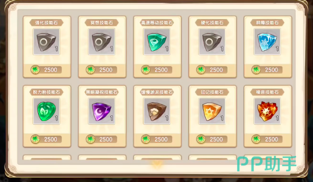 在这款游戏当中拥有十多种不同的技能石,可以帮助玩家进行精灵们的快速驯化,以便投入到更强大的战斗当中。要想获得精灵石最简单的方法,也是小编推荐新手开荒期去尝试的方法之一,就是前往训宠师协会的精灵研究中心,玩家可以寻找奇洛,与他进行对话后就可以解锁技能石商店,在商店当中就可以看到各色各样的技能时,玩家可以通过金币或者是钻石来对这些技能石进行快速的购买,从而帮助精灵宠物实现高效升级。