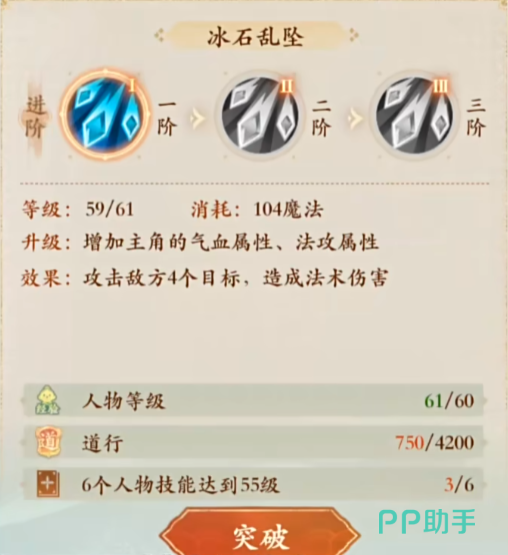 而这六个天赋还可以进行升级突破,每一个天赋都有着三阶变化,等级越高自然技能强度也会越高,如果将人物等级达到六十级,道行也提升至四千二,再把六个技能都升到五十五级还可以让天师进行新的突破。