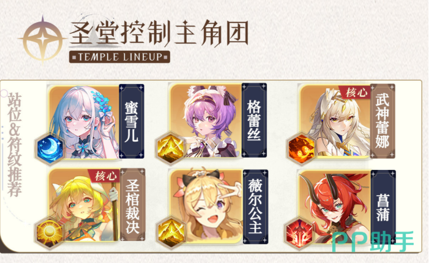 只了解角色的技能是远远不够的,还需要搭配出一支最强阵容才可以,在游戏里最适合的阵容组合就是圣官裁决,蜜雪儿、薇尔公主还有格蕾丝,在这支阵容里,既有能产生持续伤害的输出角色,也有像升官裁决这样能担任团队控场的角色,其他作为能帮助整个队伍有更强的力量,最好在这支队伍里使用武神雷娜作为核心,这样能保证持续不断的输出。