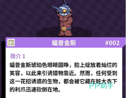 蝠普金斯与化妆小尾蛇:蝠普金斯以其琥珀色的眼睛和灿烂的笑容迷惑猎物,猎物一旦靠近,它就会用大衣将其遮掩,并迅速用爪子攻击。而化妆小尾蛇则靠头上诡异的夹板诱惑猎物,但由于其外形过于怪异,反而少有生物上当。它们的设计展示了游戏中妖怪的独特性和创造力,每个角色都有其独特的性格和战术。