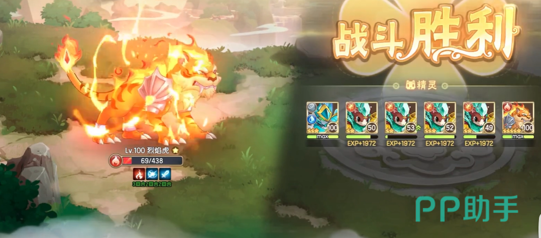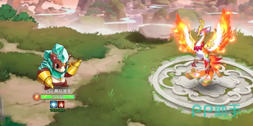 经过四只晶钻波多的频繁降低防御后,此时的凤凰的防御会变得非常低,这时候使用任意精灵都可以打出较高的伤害,我们这里推荐使用烈焰虎,这个英雄还是比较强势的。