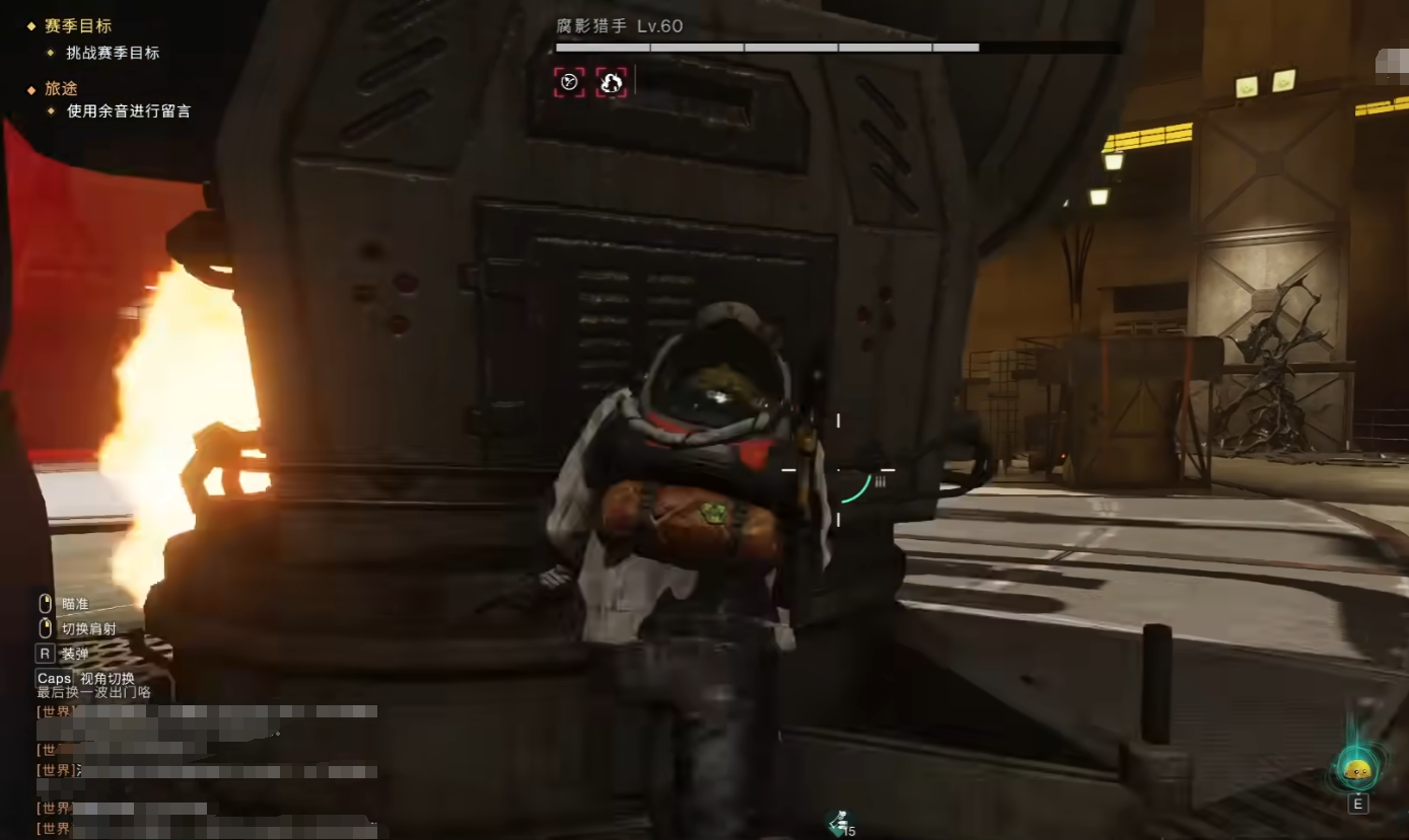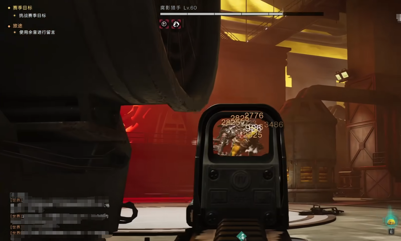 1、玩家在进入到BOSS战之后,直接往左边走找个掩体站位,然后就可以开始攻击了。等到腐影猎打算要举起手中的加特灵之后,玩家就躲到刚才找到的掩体后面,此时就可以规避腐影猎的加特灵的输出了。