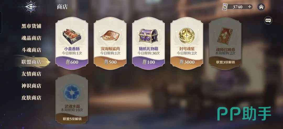 联盟商店里面有三个比较推荐去购买的,每日必买的就是小香肠,另外还有魂师召唤券,以及封号魂星,联盟活动是能获得联盟贡献的,可以通过这个兑换三种资源;至于友情商店里面,就只推荐小伙伴们买武魂召唤券了。