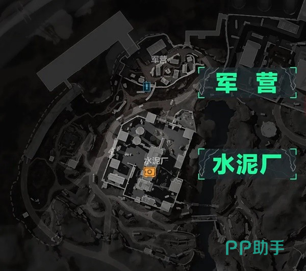 这张地图是危险行动玩法里面的一个地图,也是接触会非常多的一张地图,整个地图里面地势就是东西高,但是南部比较低,山体的中央是一个分界线,大致可以分成东,西,北三个区域。想必大家重点关注的就是物资分布情况了,在西边有两个比较主要的资源区域,就是军营以及水泥厂。前者里面固定物资点不是很多,大概是五个,工具材料以及一些电子产品都是里面可以搜出来的;而后者的物资会多一些,探索点有19个,主要就在主楼里面去搜就行了。