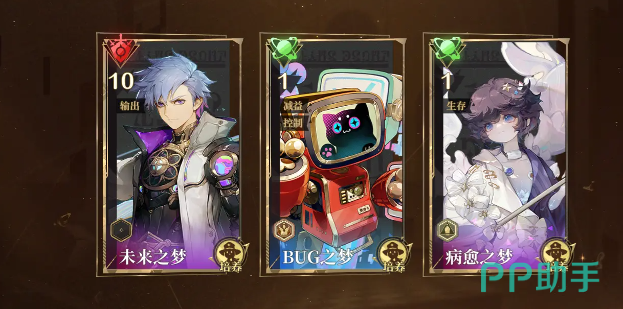 配对方面也很重要,这里可以选择搭配两个辅助。一个是bug之梦,他可以削弱敌人的防御,增加你的输出,又可以趁机控制住其他对手。另外一个推荐使用病愈之梦,它作为生存位置。可以有效的治疗所有人,避免突然阵亡,不需要从头来过。