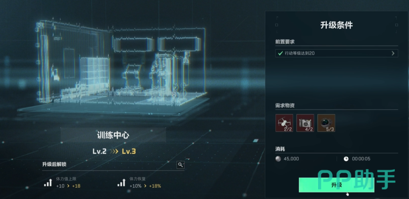 三角洲行动训练中心有什么用以及这个功能要怎么升级已经给大家说明了,如果想要后期挑战更宽阔的夺金地图,这个功能就一定要升到够高的级别,不然在灵活度和地图翻越能力方面将会有很大的劣势,跟队友一起协同作战的时候也会很不方便。