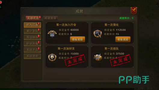 第三,成就。达成某种英雄成就即可获得大量金币,只要完成各种第一次就能领取各种成就奖励了。