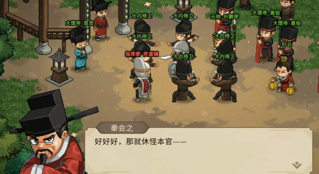 那就是跟秦桧之进行单挑,其实就是秦桧之带着一群官兵进行堵截,秦桧之会跟官兵的距离较远,这时候我们需要将他引导官员附近,使用强大的内功心法直接秒杀,这样可以节省很多的时间,而剩下的远程小兵进行击杀就可以了, 战胜以后秦桧之就会被九流门带走。