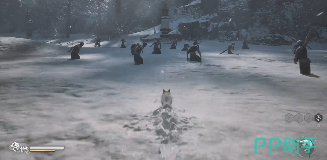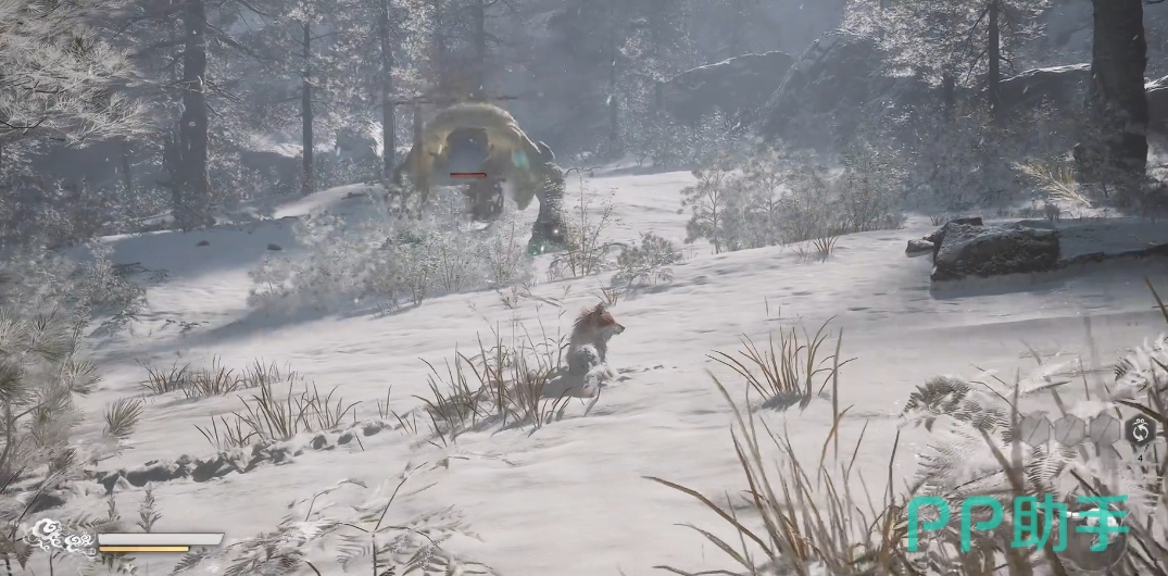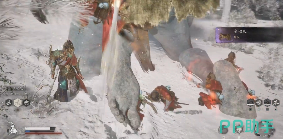 走过雪地到达前面的那片树林以后建议贴着右边的雪山走,之后绕过雪山下的一棵大树,继续往林子里面深入就可以看到一个穿着黄袍的高大僧人,击败它即可掉落金棕衣,在与它战斗的过程中建议召唤毛猴来进行牵制,这样效率更高。