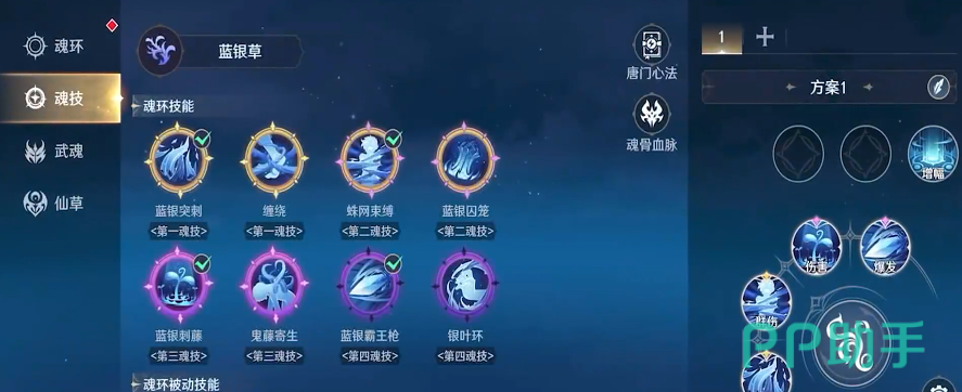游戏开始时,玩家需从八大武魂中选择一个作为初始职业,如蓝银草、七杀剑、邪火凤凰等。新手建议选择操作简便且输出高的角色,蓝银草武魂远c加控制,而柔骨兔则是贴身肉搏型武魂,都是不错的选择。但是选择与自己喜欢的玩法相匹配的武魂还是更好玩的。选择一个武魂之后最好能够便于快速上手和前期推图。完成新手引导任务后,迅速解锁魂环系统,通过猎魂获得魂环,提升角色战斗力。