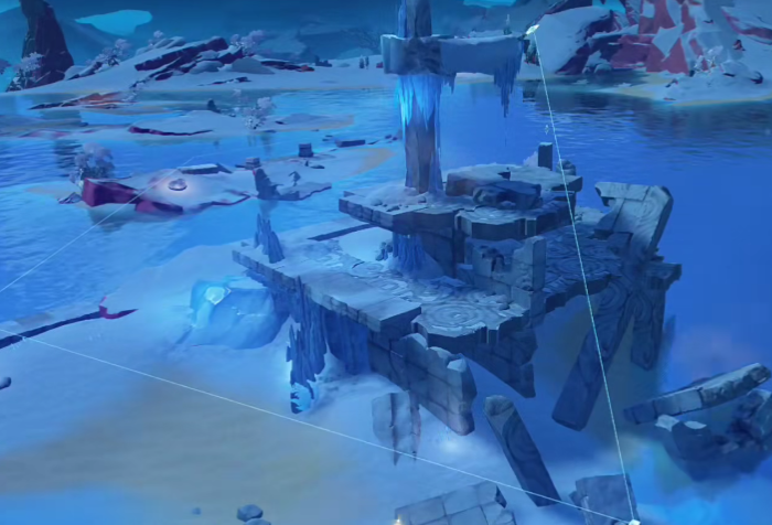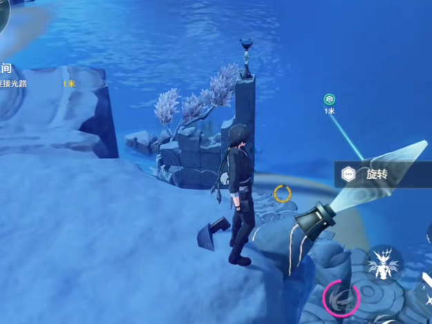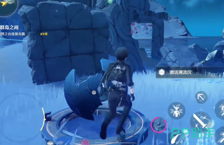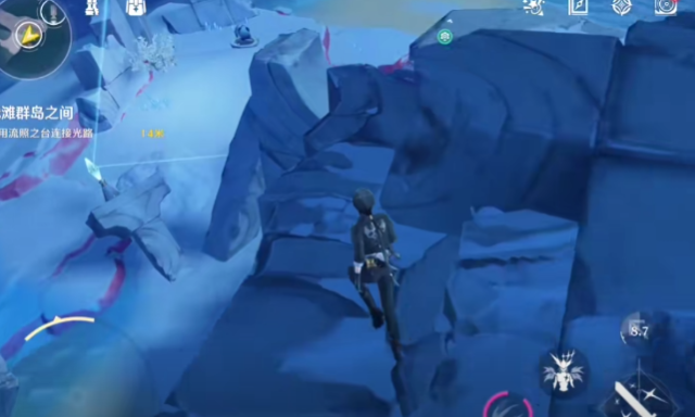 当然了,想要更加快捷的达到,可以先回到溯流仪那边,点击溯流仪选择激活溯流仪,让墙体回复没有触发任务之前的形状,没有冰柱的话,就可以利用攀爬爬上去了,这个方法需要大家去调整溯流仪回溯的状态就可以了!