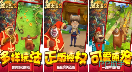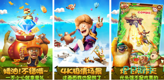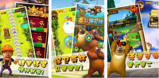 在熊出没这样的动画当中,每个角色都有不同的特色,也有不同风格,熊大拥有聪明的头脑,熊二憨憨又可爱,光头强非常狡猾。这款游戏高度还原,原版人物就连动画场景也做了完美复刻。这些动画人物带着玩家穿梭在海洋、森林当中,有多样玩法感受超级爽快的游戏体验,还有很多可爱萌宠为玩家一路保驾护航这样的,跑酷玩法受到无数小朋友的追捧。