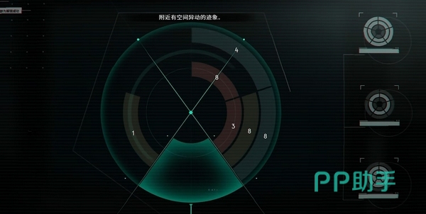 打开检测器可以看到下方有一个进度条,显示“0/24”,当进度达到“24/24”的时候就解谜乘成功了。中间的圆盘锁上有“1/3/4/8”这几个数字,想要凑齐24,自然是需要3个8。