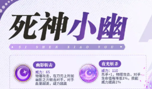 另一位暗系高手就是死神小幽,这位精灵背后环绕着金属圈,如同拥有翅膀的幽灵在空中轻盈飘荡。小幽的刀刃上附着了幽影之力,对敌人进行致命的斩击,而且敌人的血量越满它的攻击就越是犀利。它的绝招更是随着敌人生命值的下降而不断增强,让人闻风丧胆。