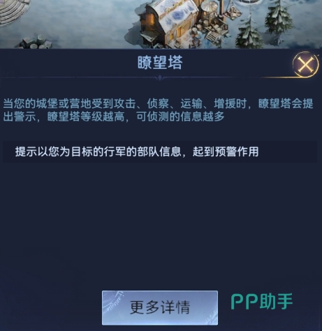 对于防守方来说,瞭望塔这类的可以去进行升级,如此就能去提前做出警示,让大家能避免被偷袭,随着等级的提升,其所能侦测的信息也就越多哦。