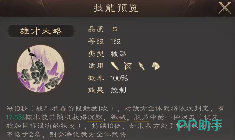 而在对战的时候,如果使用曹操上阵,那么是可以给敌方施加对应的沉默缴械效果,可以限制敌方自身的行动,为我方其他的武将赢得更好的输出空间,同时它还有一定的加成效果,搭配曹操之后,我们在发展城池的过程中也会更加顺利。