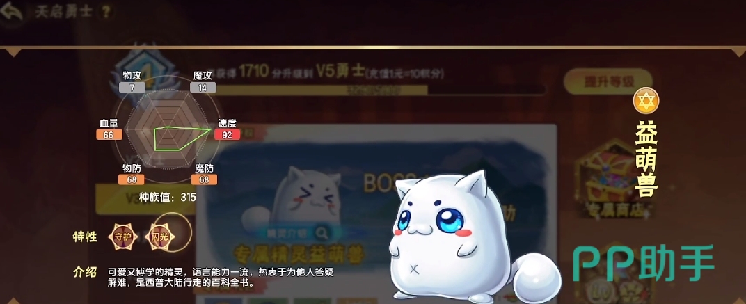 整个游戏的氪度不仅在于首充,还有在于月卡,当玩家充值额度达到50元且vip等级达到3级后才能够拥有它。益萌兽作为辅助型宠物,在属性各个方面都很完美。玩家在辅助系中关注波动是因为波动比较好容易获得,而益萌兽的充值金额较高,所以关注度没那么高。