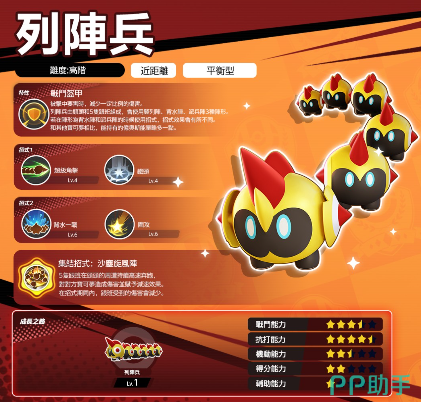 宝可梦大集结中的列阵兵是一款平衡型角色,有着独特的技能和战斗玩法,那么今天小编就带各位了解一下宝可梦大集结列阵兵强不强。其实列阵兵的基础属性属于中等水平,但由于其被动技能能够减少暴击伤害,使其在对抗暴击时坦度更强,再加上他非常好玩的小队的机制设定,非常值得大家了解一下!