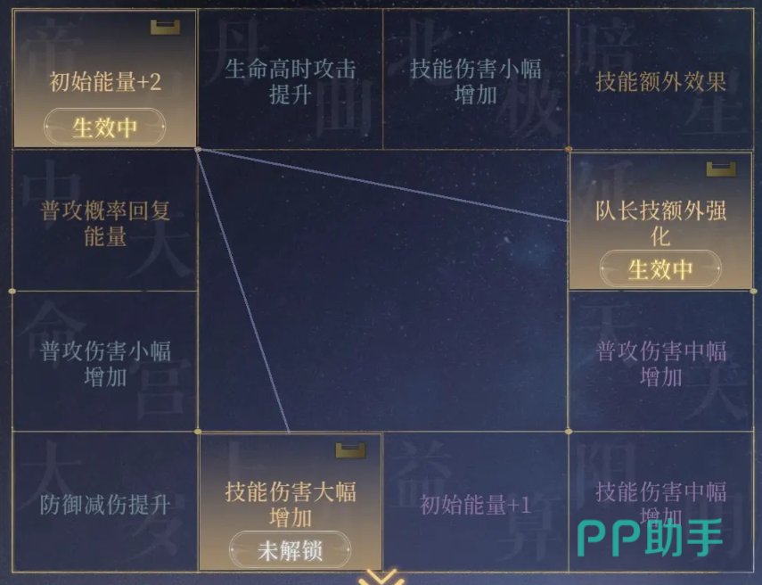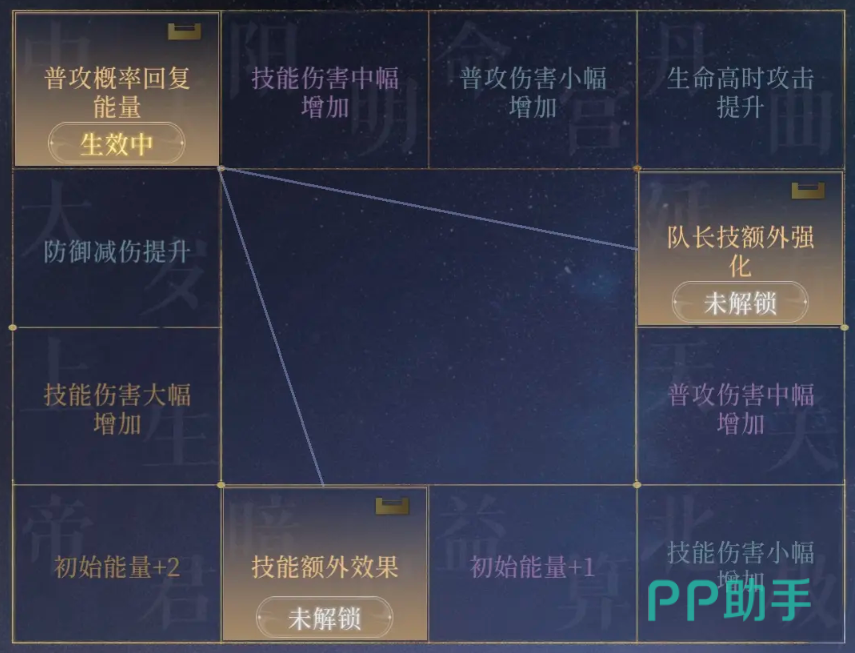 如果是练度高了之后追求极限单体的技伤爆发流杨修,则推荐“初始能量+2”、“技能伤害大幅提升”、“技能额外效果”/“技能伤害中幅提升”,这样技能循环更快,整体输出更高。