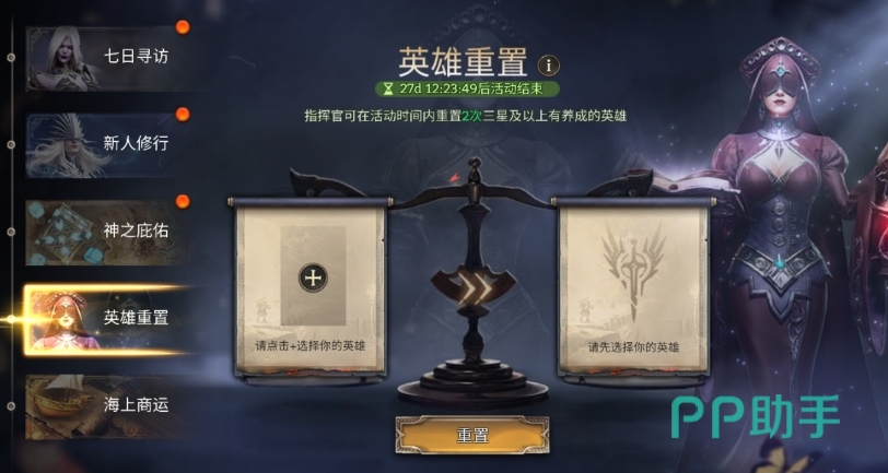 在活动期间,玩家们最多只能重置两次三星级以上的养成英雄,而且每一个英雄只能重置一次,活动是会定时开启的,基本是30天重置一次,玩家们想要给给英雄退级的话,就一定要把握好这个时间限制。